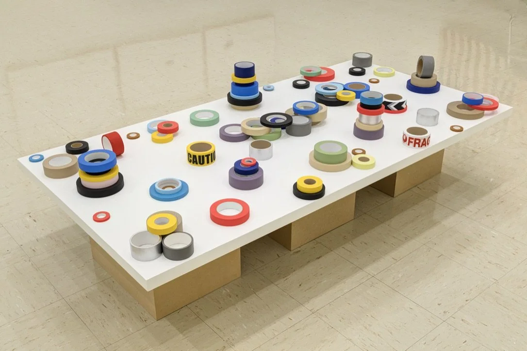 Andrea Mortson’s fantastical collages reconfigure vintage children’s books and other printed matter into eerie meditations on artistic self-reference and doubling. At once quaint and sinister, the enigmatic atmosphere of these carefully assembled compositions recalls classic fairy tales in which images come alive and the living become ghosts. Roula Partheniou also explores the ambiguities of representation, but from a more conceptual angle. In her recent body of work, Stationery Objects, she reinterprets the category of still life through meticulous, handmade replicas of office supplies. These incredible, trompe-l’oeil facsimiles of post-it notes, tape, and labels pay homage to the aesthetics of productivity while also playfully sabotaging it.
